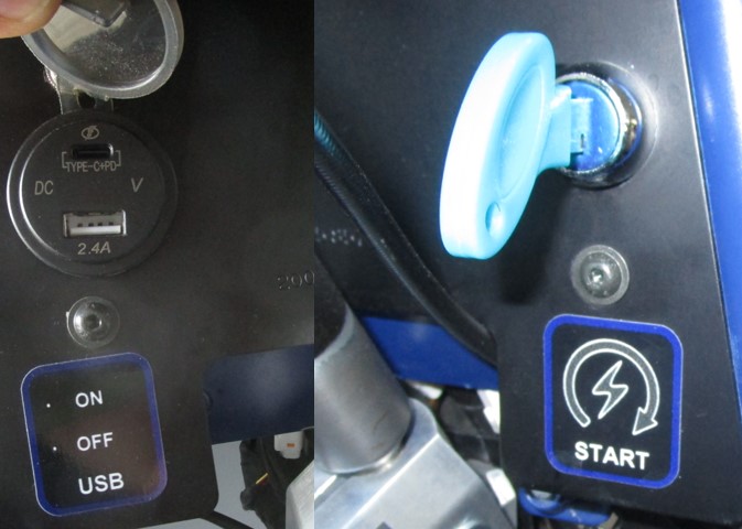 Nützliche Ausstattung, wie 12-V Bordspannung, 2 x 2000mA USB-Anschluss für z.B. Handy oder Navi als auch Schnellladegerät, Werkzeug und Packtaschen sind selbstverständlich. Polierte Aluspiegel sind schick und leicht.