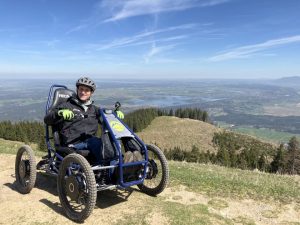 Martin Jochum, Sohn des Unternehmers ist durch einen Unfall seit einigen Jahren selbst Rollstuhlfahrer. Martin, der immer sehr aktiv war, suchte einen passenden Geländerollstuhl.